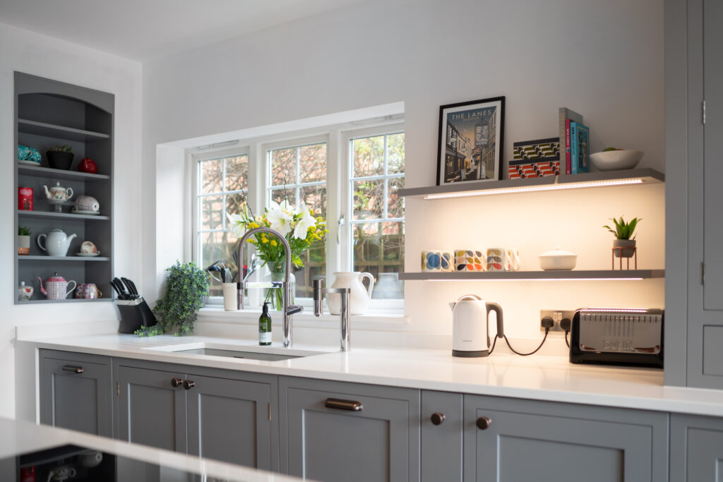 One of our favourite features is the bespoke shelving alcove. A charming shelving alcove offers a perfect spot to store cookbooks. As well as showing off your culinary prowess, keeping your cookbooks on display is a great way to add a pop of colour and personality to your interior. A pristine minimalist kitchen can make a bold design statement; however, adding some informal details will undeniably introduce a more relaxed and inviting atmosphere to the heart of your home.