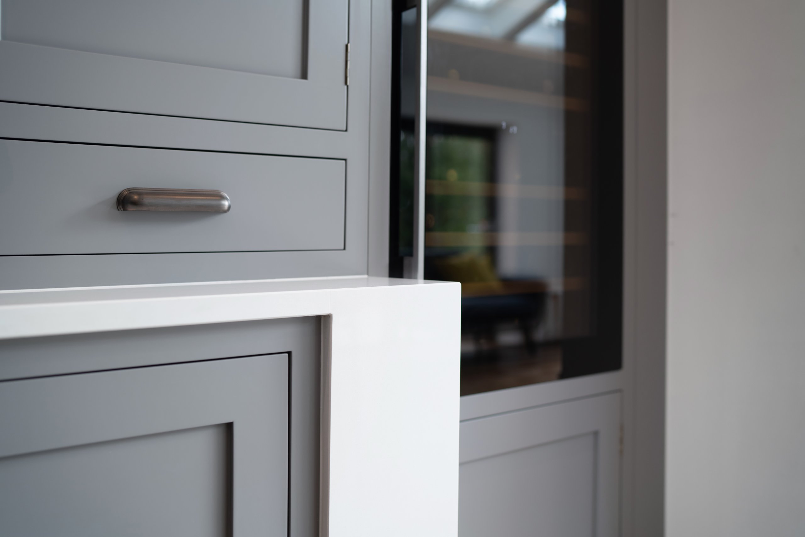 Enhance your grey shaker kitchen with a central island, offering both functionality and style. A shaker kitchen island provides additional workspace, storage, and a focal point for socialising.